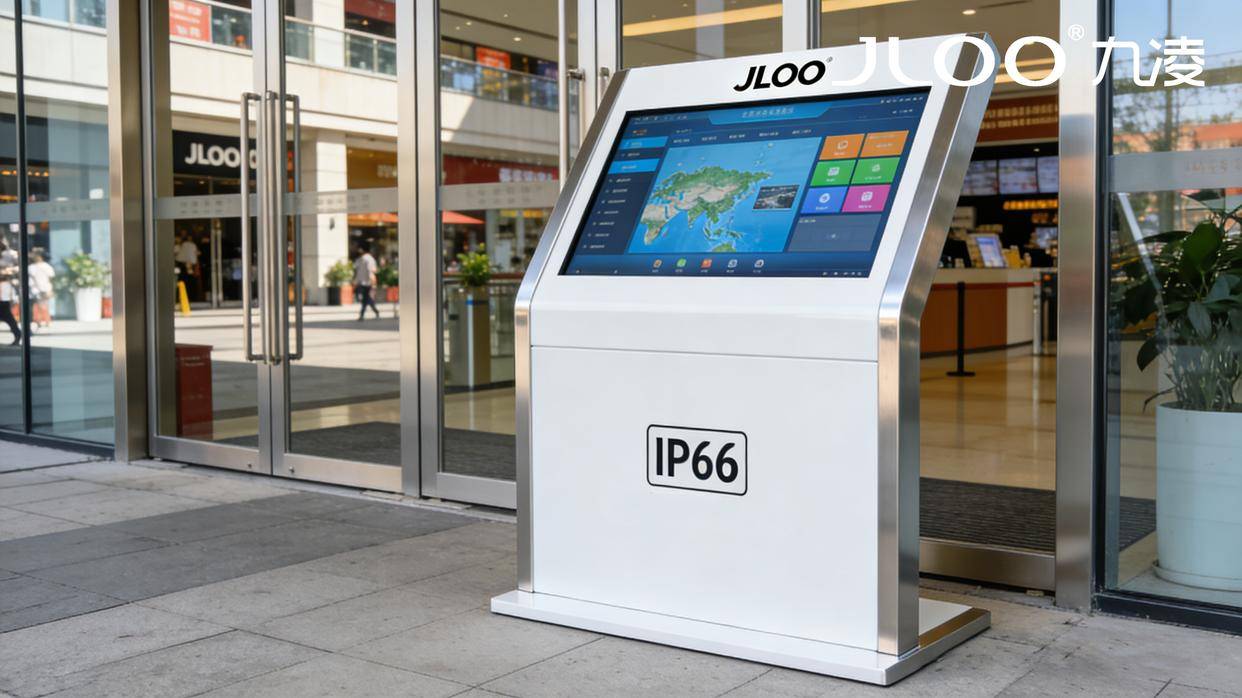 九凌 JLOO 深耕户外显示技术十余年,拥有自主知识产权与多项防水密封专利,产品通过 IP66、CE、FCC、ROHS 等权威认证。55 寸 IP66 全密封户外触控查询一体机,是专为多雨地区打造的旗舰产品,以 “极致防护 + 高清显示 + 精准交互 + 稳定运行” 四大核心优势,成为智慧城市、商业街区、景区社区等场景的首选户外信息终端。