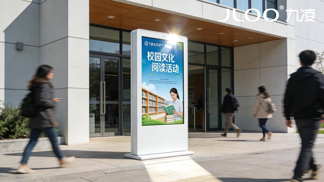招生宣传是院校的“门面”,校园文化是院校的“内核”,两者的深度融合,是院校实现高质量发展的重要支撑。九凌JLOO 65寸户外广告机以硬核的产品性能、智能的管控系统、灵活的场景适配,打破了招生宣传与校园文化传播的壁垒,实现了“一屏多用、双向赋能”——既让招生信息传递更精准、更高效,助力院校吸纳优质生源;也让校园文化展示更生动、更鲜活,彰显院校的办学特色与人文底蕴。